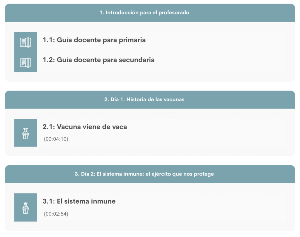 Puedes ver el primer vídeo (Historia de las vacunas) gratis en Youtube.